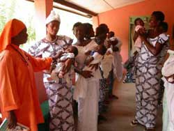 At a clinic party the new mothers arrived dressed